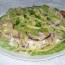 WYKONANIE: 1. Ser kroimy w ,,makaronik”, ogórki w kostkę, cebule w cienkie piórka, jajka siekamy. Składniki łączymy z majonezem wymieszanym ze śmietaną, dodajemy zieleninę, doprawiamy. Całość delikatnie, ale dokładnie...