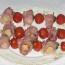 Przygotowanie: • Ziemniaki dobrze umyć i ugotować w osolonej wodzie. Ostudzić, po czym obrać ze skórki. Każdy ziemniak owinąć w plasterek boczku. • Ziemniaki, pomidorki i listki szałwii nadziewać na patyczki. • Całość oprószyć solą i...