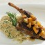 Kaczkę solimy, posypujemy kminkiem, nacieramy miodem. Pieczemy na owocach z rodzynkami. Z pozostałości po pieczeniu przygotujemy sos. Kapustę kroimy w paseczki, cebulę i imbir w kostkę. Na rozgrzanym maśle wszystko podsmażamy,...