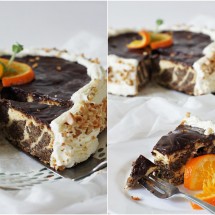 Tortownicę o średnicy 20 cm natłuścić i obsypać bułką tartą lub mąką. Na środek tortownicy nałożyć 3 łyżki masy serowej, na środek nałożonej masy nałożyć kolejne trzy łyżki masy makowej. Ciasto będzie rozlewać się na boki. Nakładać masy na zmianę aż do opróżnienia misek. Wstawić tortownicę do piekarnika i piec około 1,5 godziny, do tak zwanego „suchego patyczka”.