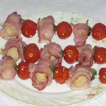Szaszłyki z ziemniaków i boczku.