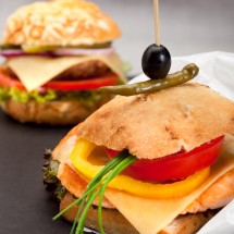 Burger z łososiem i serem żółtym