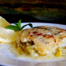 Cytrynowy sandacz z porami w białym winie