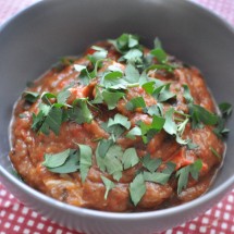 4. Warzywa blenderujemy, dodajemy pieprz i wyciskamy upieczoną cytrynę. Przekładamy wszystko do miseczki i posypujemy pietruszką.