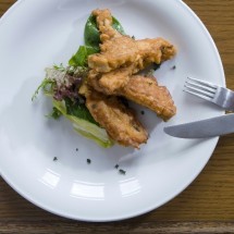 Po usunięciu ości, filet z karpia pokroić w paseczki wielkości dużych frytek. Następnie przygotować ciasto mieszając jaja, zmielony czosnek lubczyk, sól i pieprz, w którym zanurzamy rybę na ok. 2 godz.