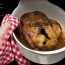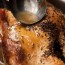Kaczkę podczas pieczenia polewamy powstałym sosem, aby mniej tłuste części nie wysuszyły się zbytnio.