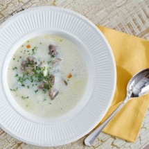 Na końcu wlewamy żółtko rozbełtane w mleku i krótko gotujemy.