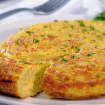 Podawać na okrągłym talerzu na ciepło lub na zimno. Jeśli chcemy wziąć omlet na piknik lub pociąć go, należy użyć więcej ziemniaków by był grubszy i łatwiejszy do krojenia.