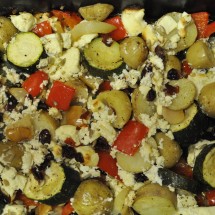 3. Fetę kruszymy w palcach na naszą zapiekankę. Jeżeli chcemy wykorzystać inny ser (np. mozzarellę) dodajmy go na 5 minut przed wyjęciem, by nie utworzyła się skorupa, a wszystko przyjemnie się ciągnęło.