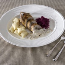 Pieczemy w nagrzanym piekarniku w temperaturze 230 °C, aż mięso będzie miękkie, tj. około 45 minut. W razie potrzeby podlewamy gorącą wodą.