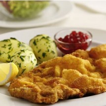 Tradycyjnie Wiener Schnitzel podawany jest z pieczonymi ziemniaczkami, zieloną sałatą lub sałatką ziemniaczaną z pietruszką. Niezbędne są ćwiartki cytryny, które tradycyjnie wyciska się na przepyszną, chrupiącą panierkę.