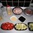Kurczaka, wątróbkę i warzywa umieszczamy w 3 osobnych miseczkach, do każdej z nich wlewamy po 3 łyżki przestudzonej marynaty i odstawiamy na 30 min. do lodówki.