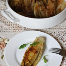 W naczyniu żaroodpornym ułożyć połówki cykorii, zalać sosem z patelni. Zapiekać 20 minut, po tym czasie wyjąć i podawać. Zapiekana cykoria najsmaczniejsza jest na ciepło, można ją podać z grzankami, chlebem lub solo;).