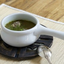 Z ugotowanego mięsa usuwamy kości i mięso drobno mielimy. Dodajemy jajko, mąkę, pokrojoną w drobne kostki bułkę, drobno posiekaną pietruszkę i małą ilość startej gałki muszkatołowej. Mieszamy i formujemy małe knedle lub kluski.