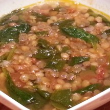 Kiedy cebula i czosnek się zeszklą, a boczek zrumieni dorzucamy pokrojone pomidory i całość dusimy przez chwilę. Następnie wrzucamy umyty szpinak i mieszamy wszystko aż listki zmiękną. Do garnka dodajemy ugotowaną soczewicę i zalewamy wszystko gorącym wywarem warzywnym lub bulionem. Doprawiamy solą i pieprzem i gotujemy przez 5 minut.