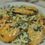 1. Na rozgrzanej oliwie podsmażamy dwa, rozgniecione ząbki czosnku i usuwamy je (nie przypal ich!). Siekamy szalotkę i wrzucamy na czosnkową oliwę, by ją zeszklić. 2. Umyte krewetki wrzucamy na patelnię i lekko podsmażamy ( 1 minuta...
