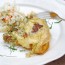 Osobno gotujemy kaszę i groch, na miękko. Królika dzielimy na porcje, solimy i na gorącym oleju krótko opiekamy. Podsmażamy drobno pokrojoną cebulę, kładziemy na nią opieczone kawałki królika, zalewamy wywarem, dodajemy starty czosnek,...