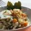 Opłukaną białą fasolę moczymy przez 24 godziny, następnie powoli gotujemy z oczyszczonymi i na większe kawałki pokrojonymi warzywami, listkiem laurowym i tymiankiem. Kiedy fasola jest prawie miękka, dodajemy starty ziemniak, który ma...